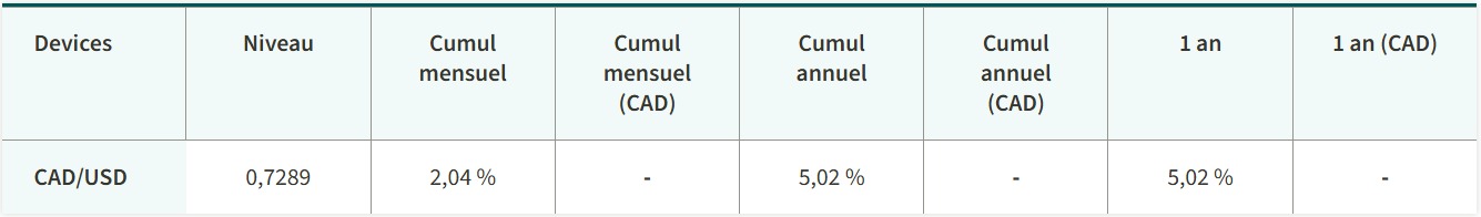 L’indice composé S&P/TSX a été entraîné à la hausse par le secteur des services financiers. Les actions états-uniennes ont un peu baissé. Les rendements des obligations gouvernementales à 10 ans du Canada et des États-Unis ont augmenté. Le prix du pétrole a reculé, celui de l’or a monté.